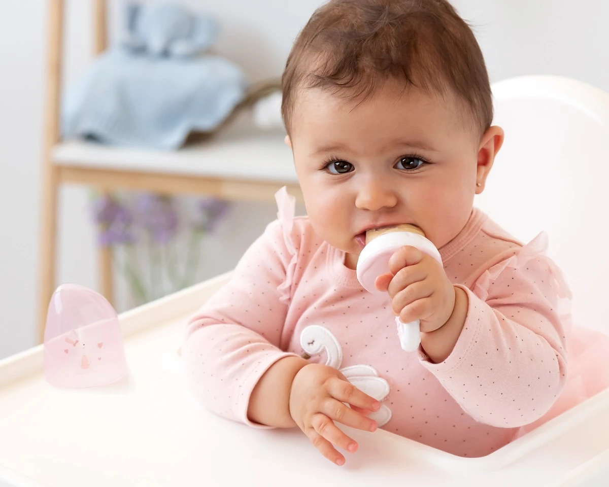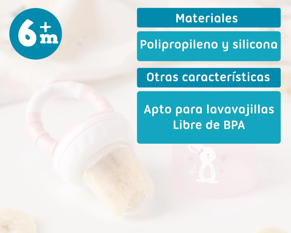 Resulta una herramienta indispensable para introducir en la dieta del bebé nuevos sabores y texturas sin peligro de ahogamiento ya que el niño va a morder y alimentarse de forma autónoma extrayendo el jugo, pero quedando retenidos los trozos en el interior de la malla.