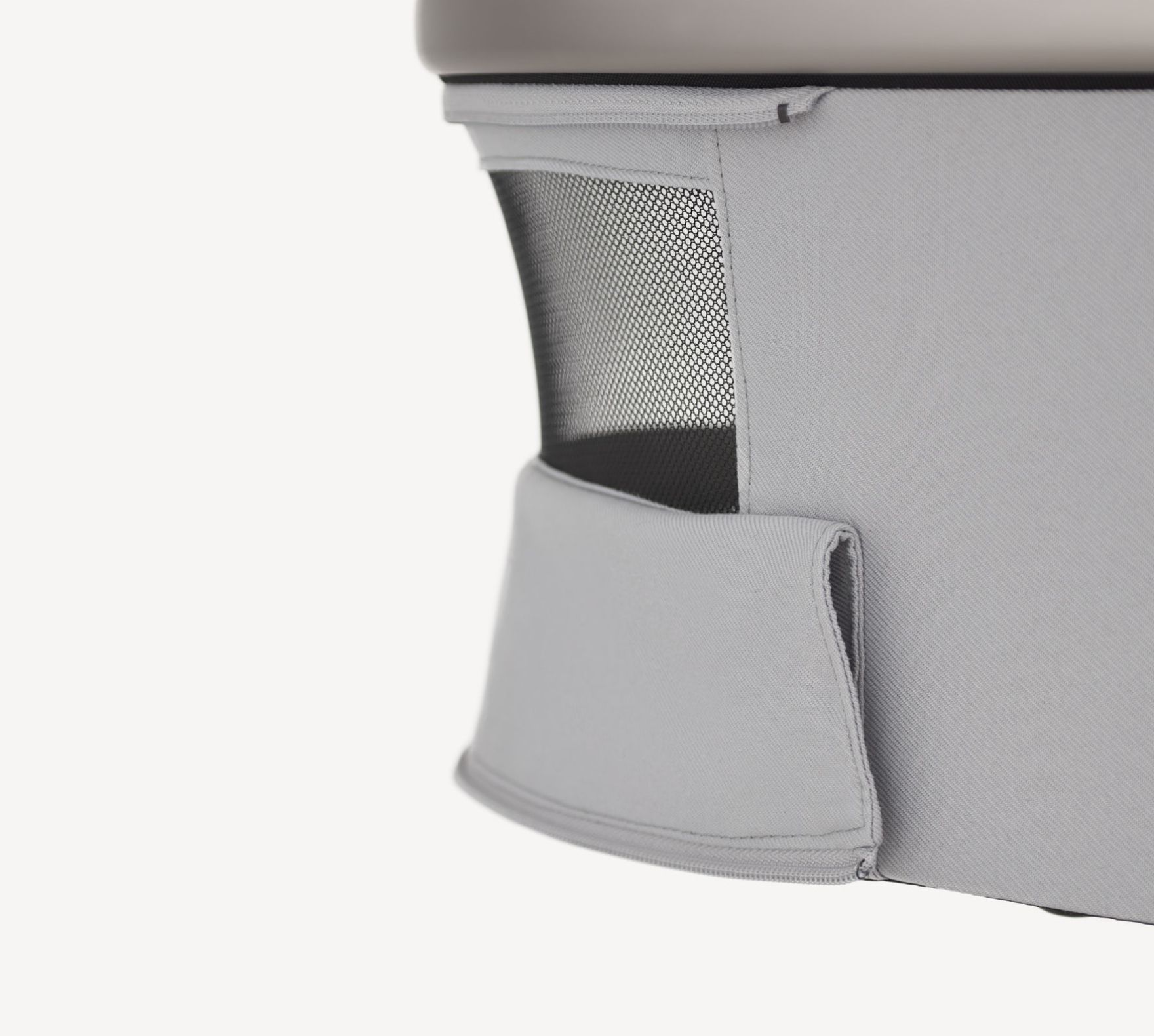 El cochecito tiene un sistema de ventilación sofisticado que proporciona el flujo de aire en los lugares correctos — desde la capota y la parte delantera del capazo hasta el reposapiés y la capota del asiento.