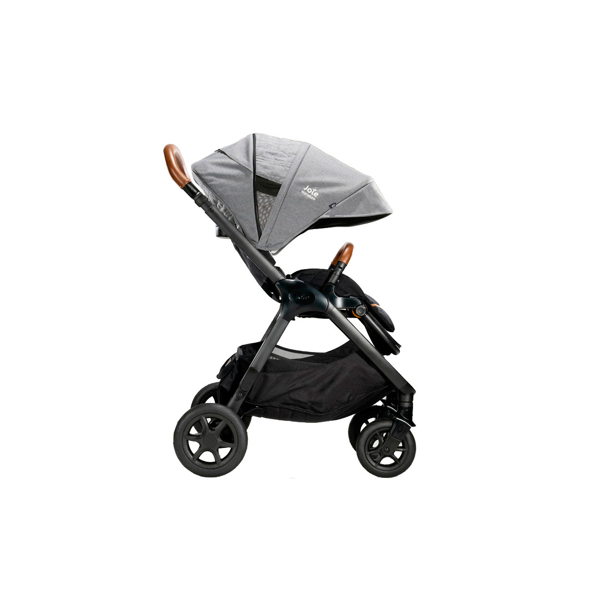 Experimenta la versatilidad del cochecito Signature de Joie, que ofrece cuatro opciones en una sola unidad, ya sea con un portabebés o un capazo, y la posibilidad de ajustar el asiento hacia adelante o hacia atrás.