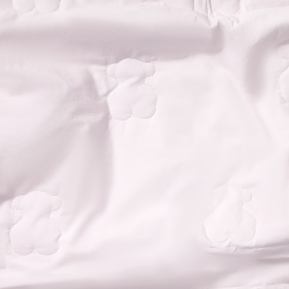 Colcha Tous Baby para cuna, confeccionada en algodón liso con relleno, pespunteada con la silueta de osos al tono. Composición: 100% Algodón. Medidas: 100×140 cm. Color: Rosa. Fabricado en la UE. Etiquetado GREENABLE: Certificado OEKO-TEX*. Los tejidos OEKO TEX* Standard 100 certifican que se ha realizado un control en todas las etapas de fabricación: materias primas, fibras y tintes. De esta manera, aseguran no contener materiales nocivos para la salud ni para el medioambiente. Detalles: Lavar antes de usar, lavar con colores similares, no secar en secadora, lavar 30º.