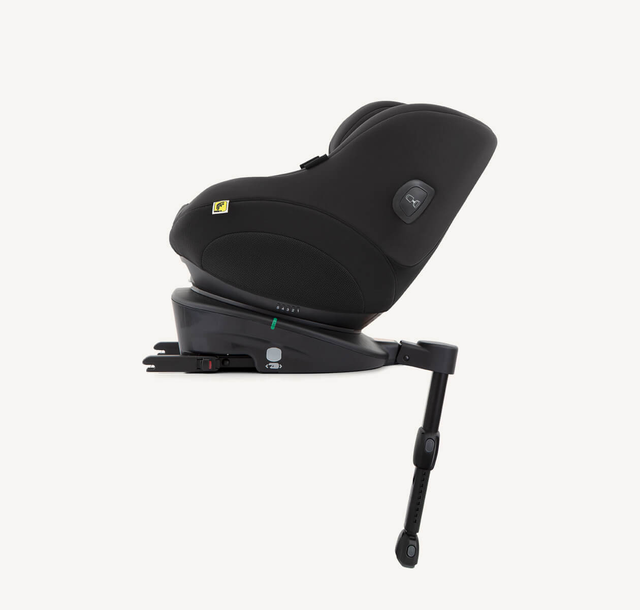 Una silla de coche con certificación R129 y i-Size que gira 360°. con un activador de giro con una sola mano para facilitar los viajes y las transiciones… ¡como debe ser!