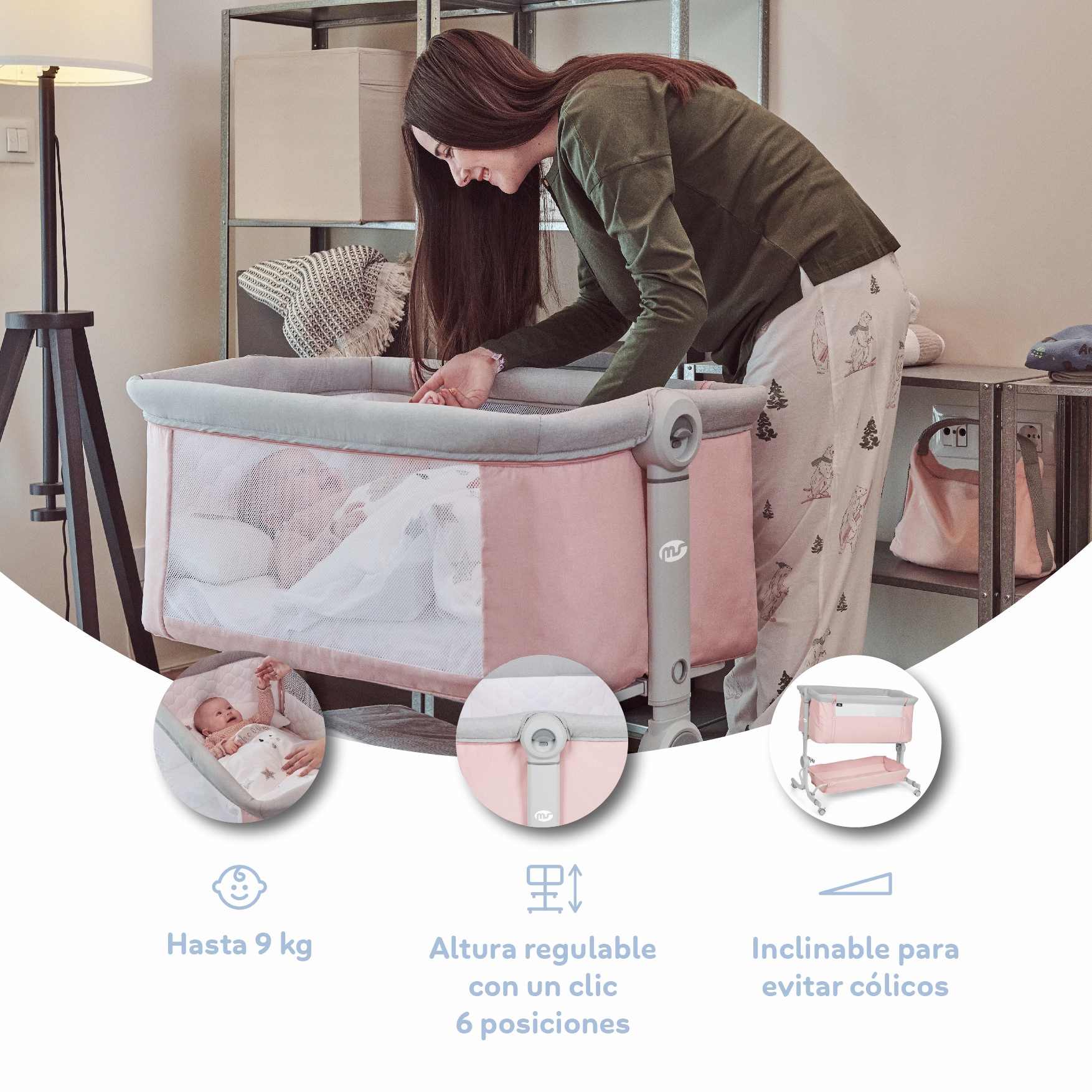 La minicuna con colecho Comfy está disponible en color, beis, gris, rosa o verde, para que puedas elegir el tono que mejor combine con la habitación de tu bebé.