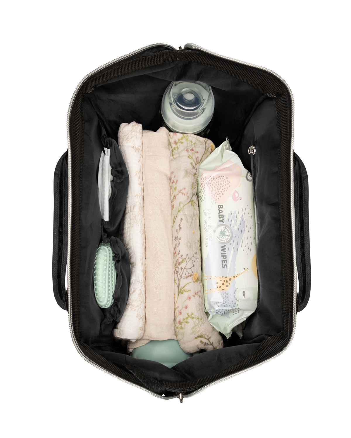 Mochila Maternal que dispone de disferentes bolsillos interiores y exteriores para poder organizar del mejor modo todos los artículos para tú bebé.