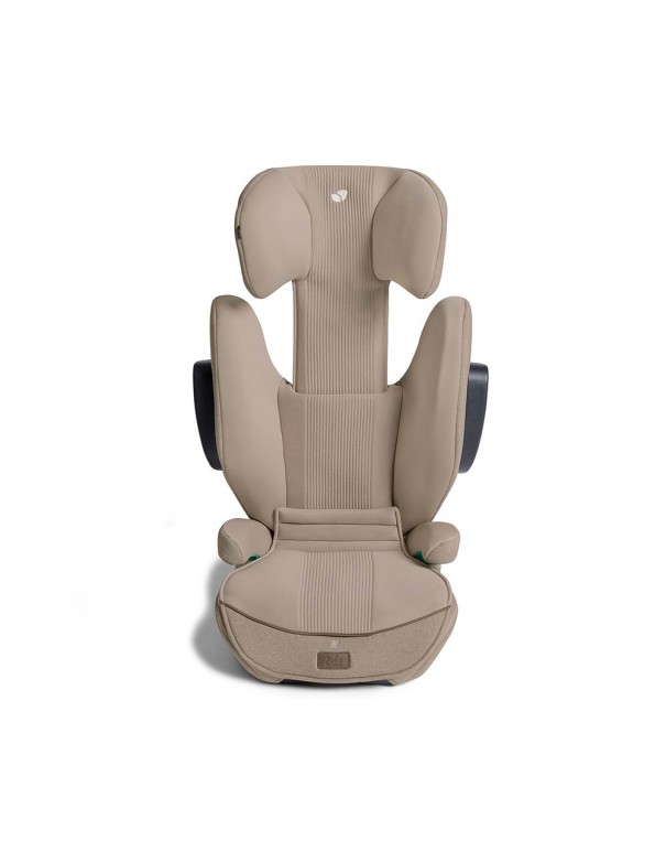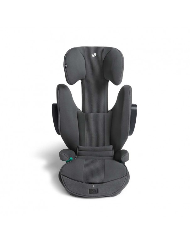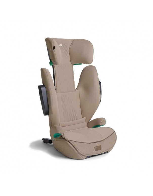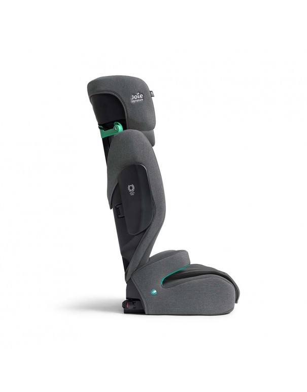 Una silla elevadora con cinturón i-Size con protección adicional contra impactos laterales para una transición segura de niño a preadolescente.