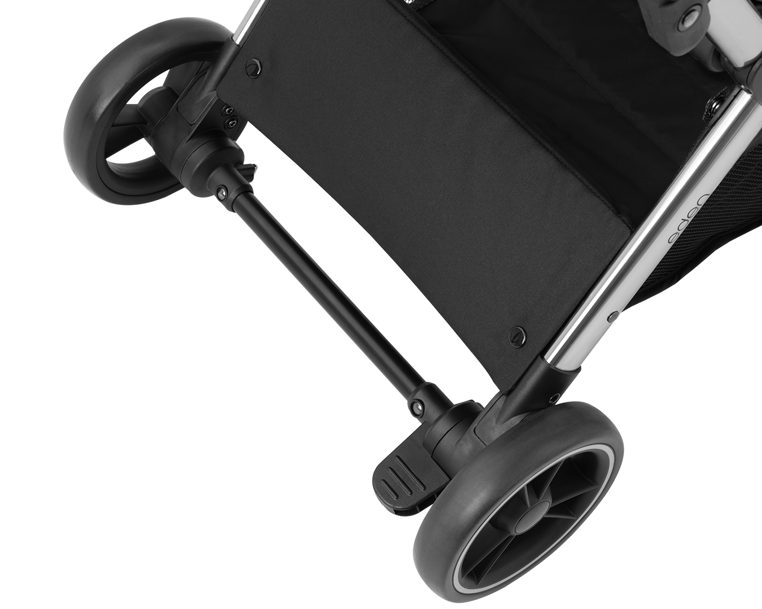 Con un marco de aluminio ligero con acabado cromado, combina resistencia y elegancia sin comprometer la facilidad de manejo. Su capota con parasol y apertura de ventilación en el respaldo garantizan una experiencia fresca y confortable para el bebé, mientras que su barra parachoques y asa de empuje en cuero aportan un toque de sofisticación y comodidad para los padres.