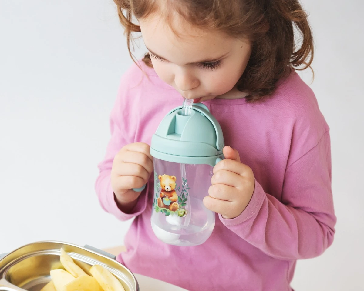 Tiene una fácil apertura deslizante, que es muy higiénica ya que una vez que se cierra la tapa, la pajita queda protegida de todo contacto con el exterior.