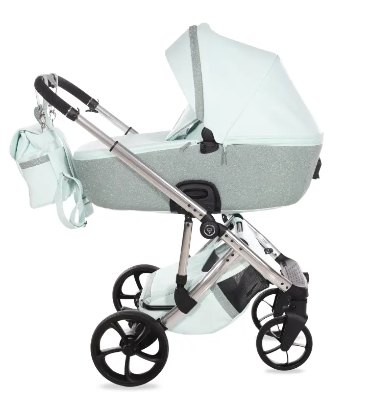 El cochecito de bebé Junama Termo V3 Glitter Eco Cuero combina diseño exclusivo en eco-cuero brillante con comodidad y seguridad. Capazo amplio, silla reversible, chasis ligero y accesorios incluidos para un paseo único cada día.