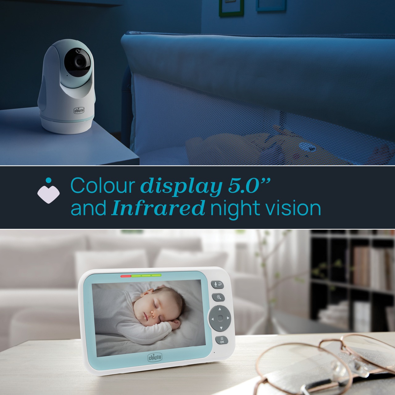 Visión completa gracias al movimiento de la cámara que permite girarla 320º sobre si misma, y 120º en movimientos verticales. Así, con este vigilabebés tendrás una visión total y comunicación bidireccional con el bebé.